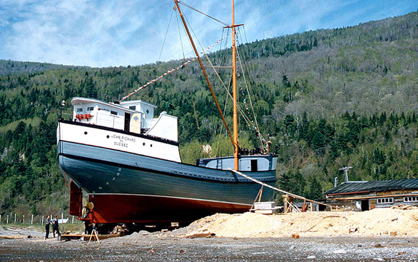 At Petite-Rivière in Quebec on May 23, 1959, St. Lawrence sailors launched their last wooden schooner, the Jean Richard. It was built by Philippe Lavoie, carpenter, Paul-Émile Square Port-au-Persil.