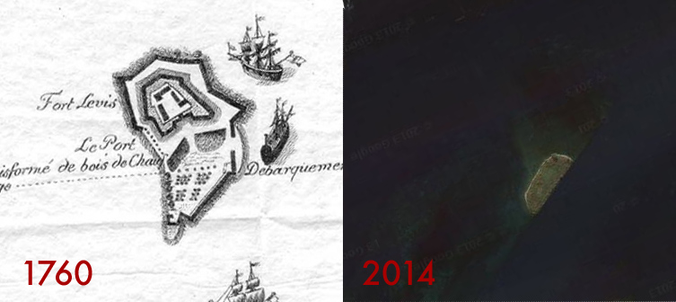 Comparison of the island then and now.