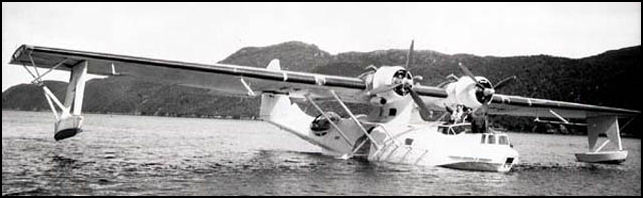 The amphibious PBY-Canso sitting in the water showing its large stature.