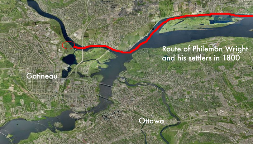 American ex-patriot Philemon Wright left Woburn, Mass. in 1800 with his wife, children and 45 others to settle what is now the National Capital Region.