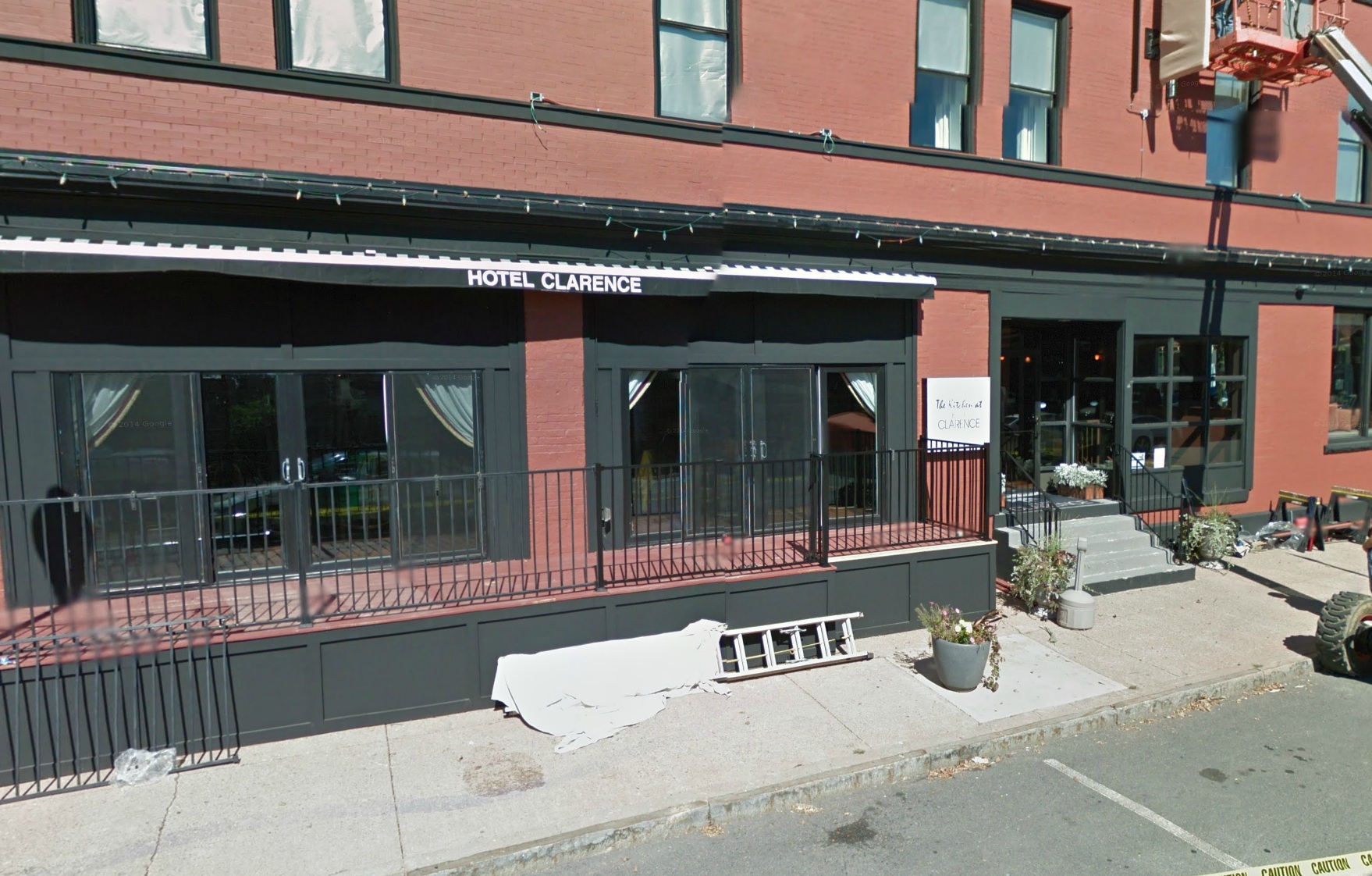 Google streetview reveals the name of the street the bridge is on. Clarence was the angel in the film that George rescues from the river.