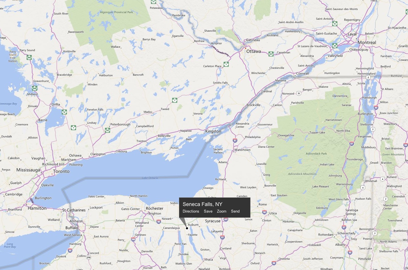 Map showing the location of Seneca Falls, the town that may have inspired the film location for “It’s A Wonderful Life”