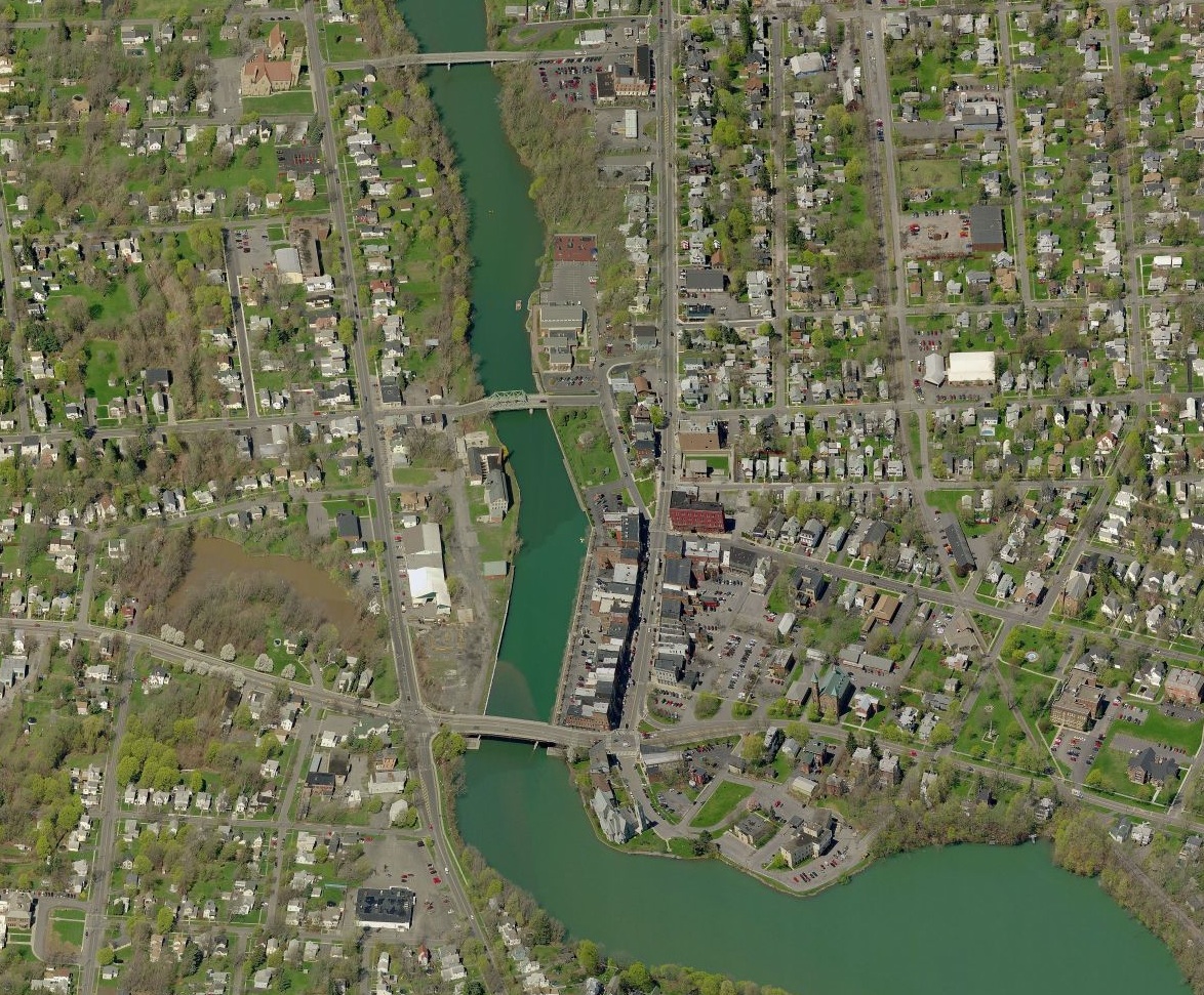 The town of Seneca Falls that shows the main street, bridge and other elements that are similar to those in the film.