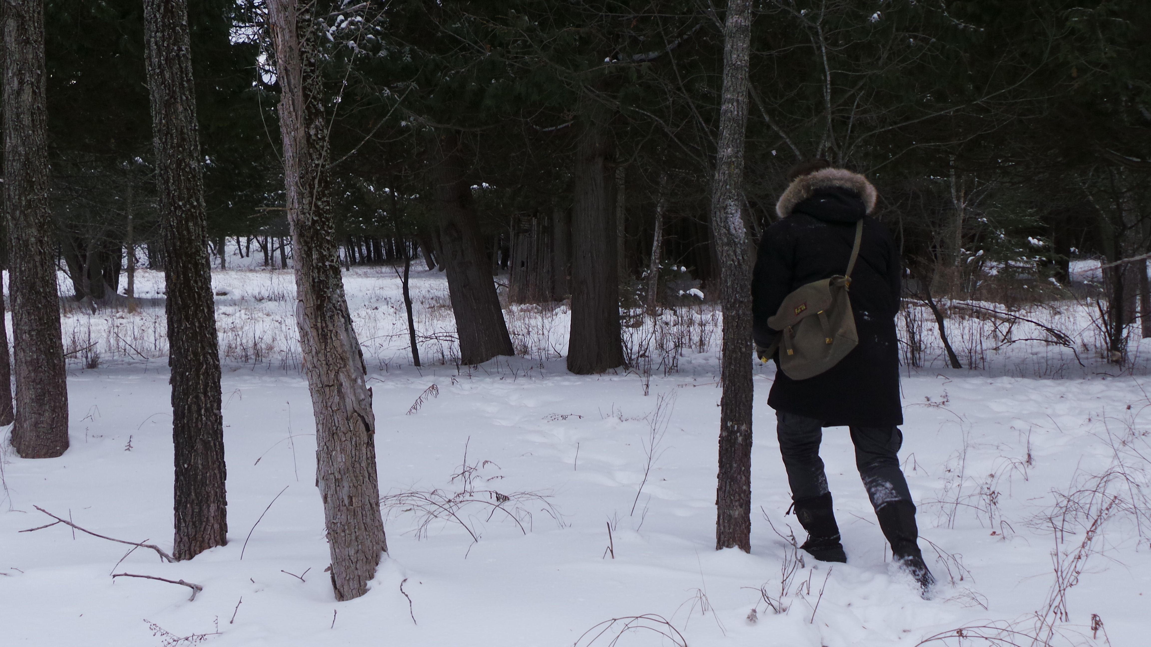 Overlaying the known locations over a current map Glen and I were able to locate the vicinity of the motels and where the remains of these mid-century motels may lie. Arranging to meet nearby, we happened to pick one of the coldest days of the winter for our expedition, and needless to say, a half hour into our adventure our cameras and batteries began to freeze up. Keeping them close to our bodies for restorative warmth, we trudged through the -20 temperatures and crunching snow to discover the site of Charlie’s Motel.