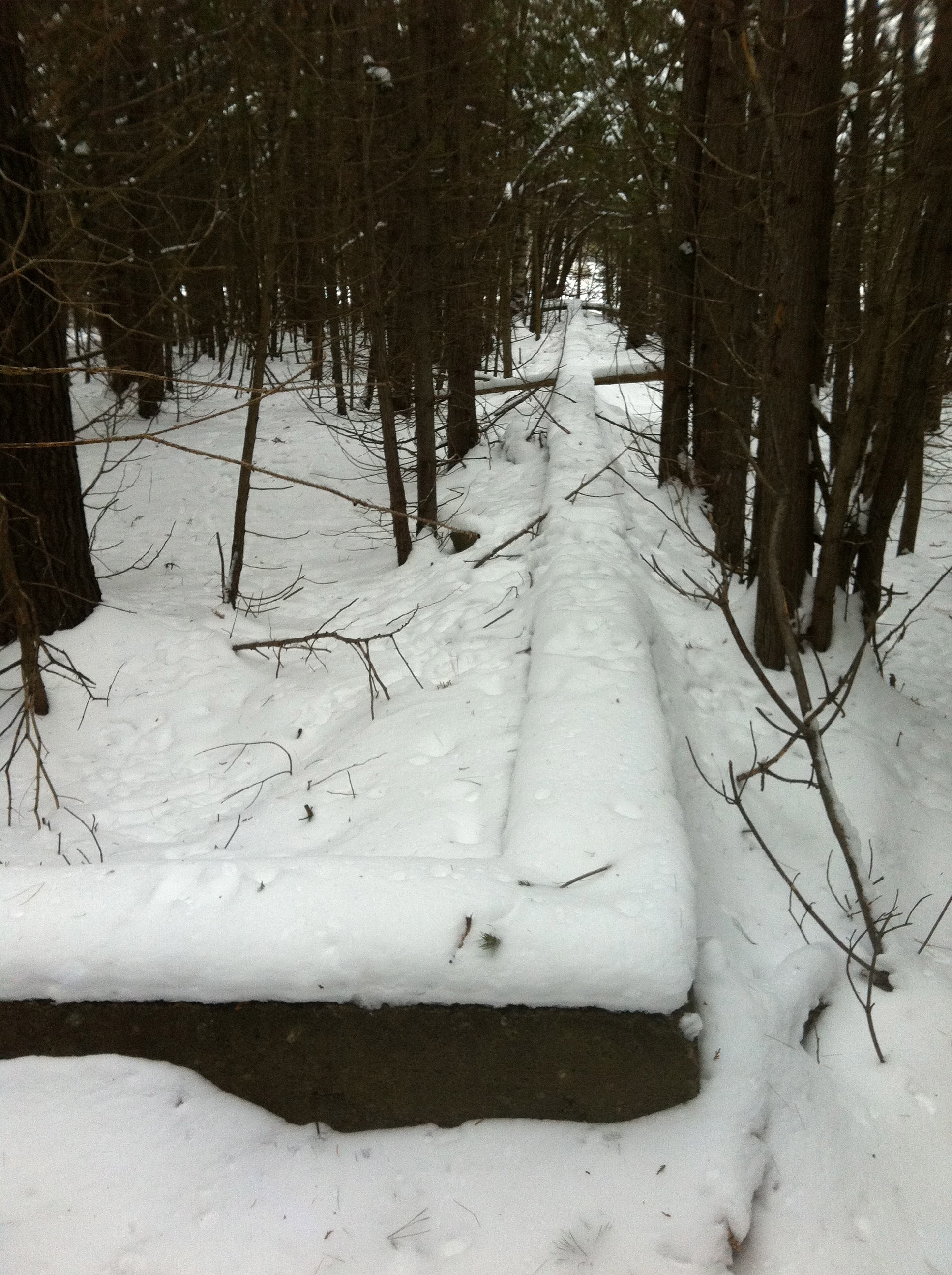 Starting out from the Old Quarry Trail parking lot on Eagleson Road, we set out to see if anything was left of the motels. Our cameras froze and we had to crawl along in the snow at one point, but we found what we were looking for. Not the swings, but something even more interesting…