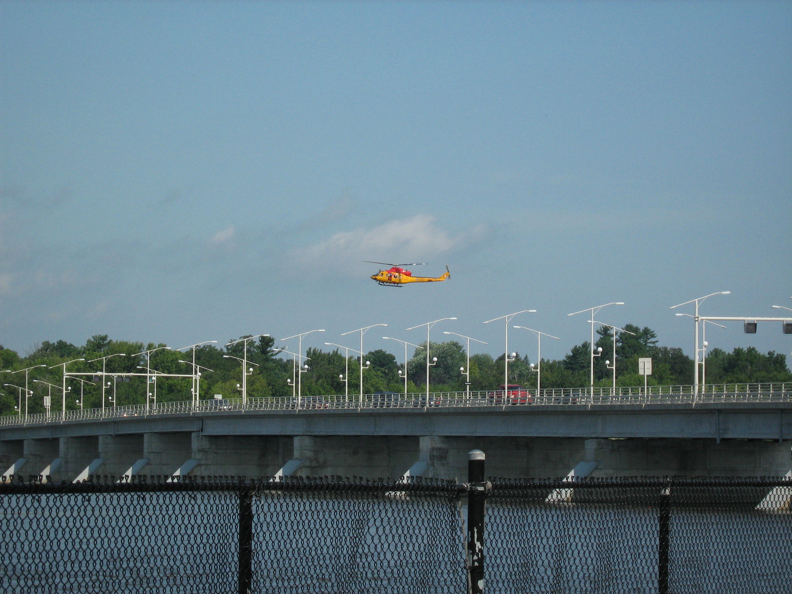 In 2009 an extensive search operation involving military and police equipment scoured the Ottawa River for what was reported to be a crashed UFO. (this photo I snapped is from that search near the Champlain Bridge)