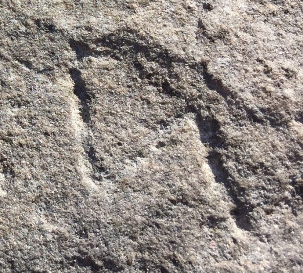 I’m unsure as to why two holes were in the rock, but I was even more unsure as to why there would be an inscription carved into the stone. Was it someone’s initials scribed into the rock’s surface by some early graffiti artist on the island? That was my first thought until I noticed the last figure was not a letter, but a symbol. What looked to be “JMW” seemed to more like a line of symbols than letters, and so I took a closer look.