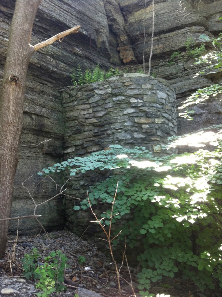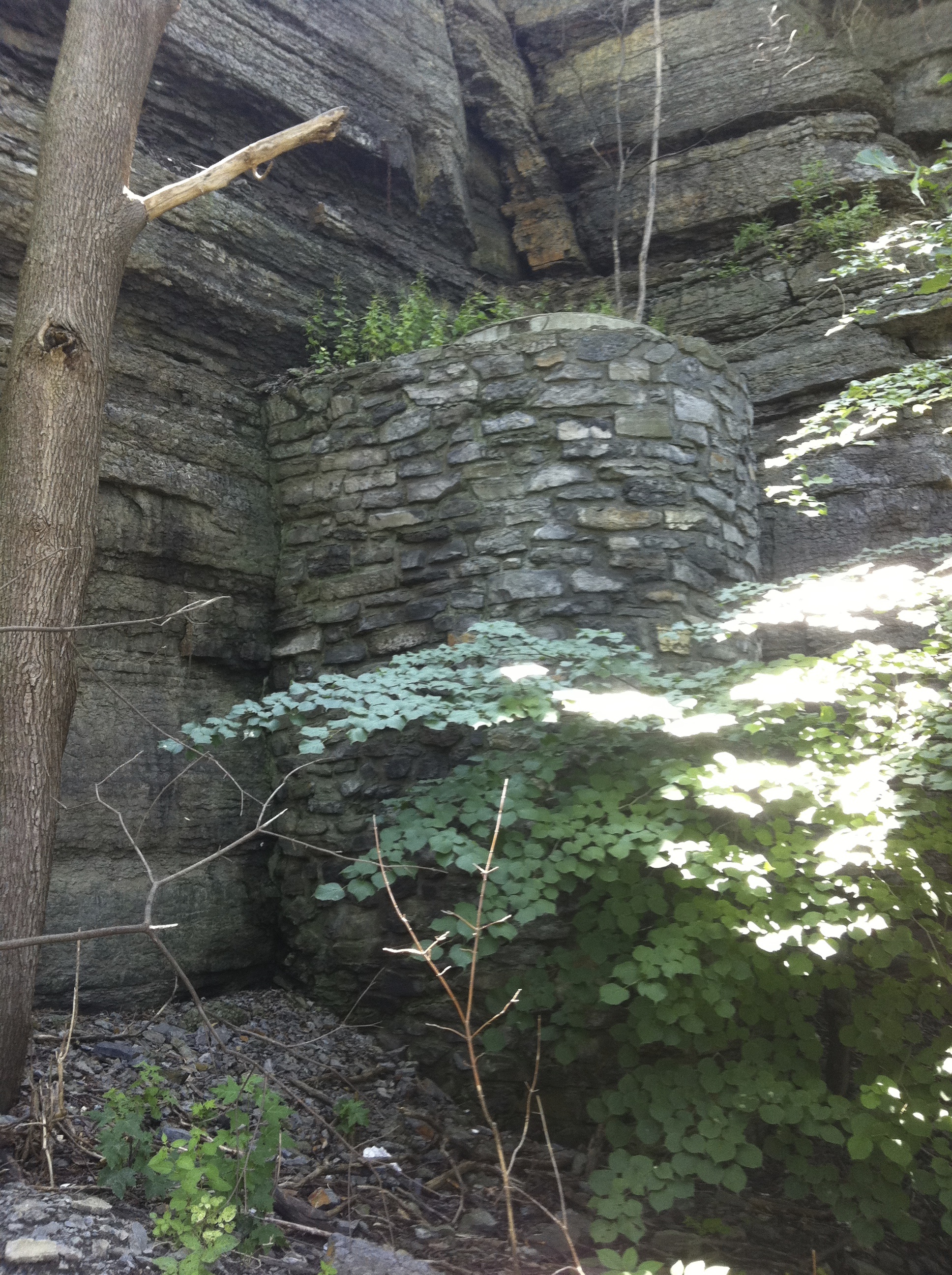 Sometime in history, someone has built a stone enclosure around the base of this cliff containing what sounds to be a water source underneath. A concrete hatch is on its top surface and nearby there is a City Of Ottawa water management building with hatches to whatever lies underneath. Is this an entrance into Pooley’s Cave?