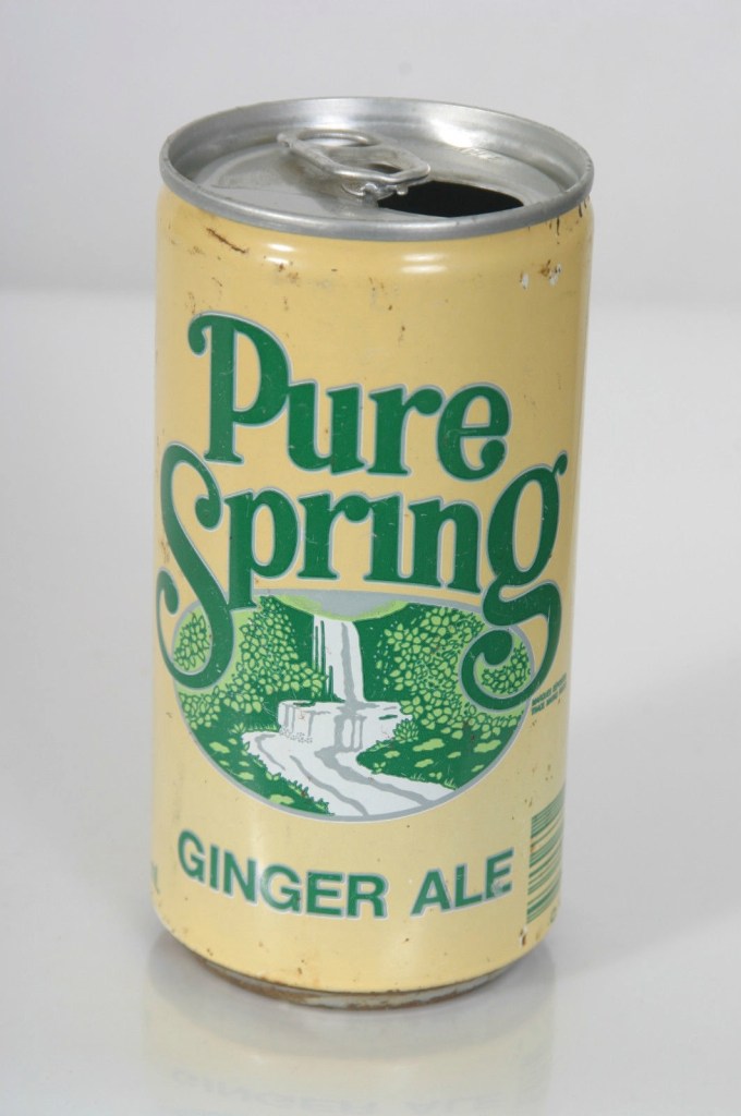 Pure Spring not only commanded a large percentage of the soft drink industry in Canada at the time, but they also introduced canned soft drinks to this country and later the twist off cap. Pure Spring Ginger Ale continued to be produced until the mid-eighties, at which time their logo featured spring water pouring over a limestone embankment, the same water source that was likely inside this cave!