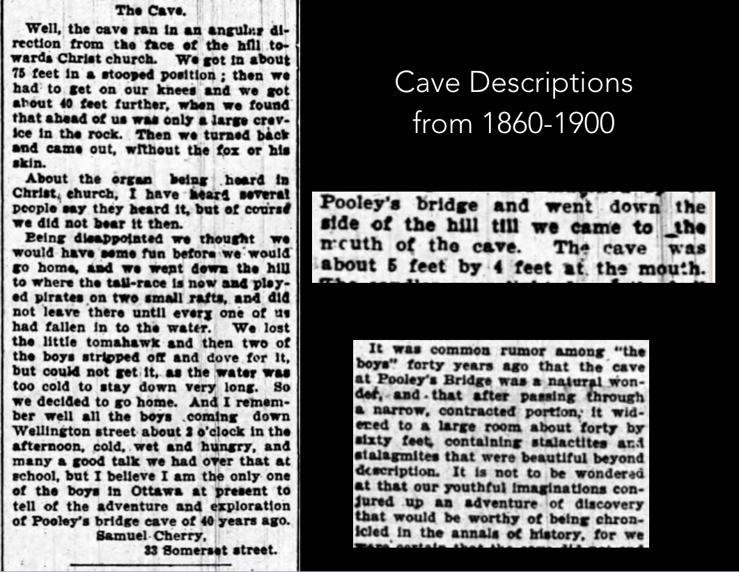 Ottawa holds a number of secrets beneath its streets, from tunnels to vaults with many other concealed subterranean features, but one hidden feature I find to be particularly interesting. It is the legend of a far stretching cavern with waterfalls, stalagmites and a century old connection to one of Canada’s largest soft drink companies. It is the Legend Of Pooley’s Cave.