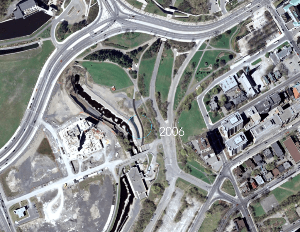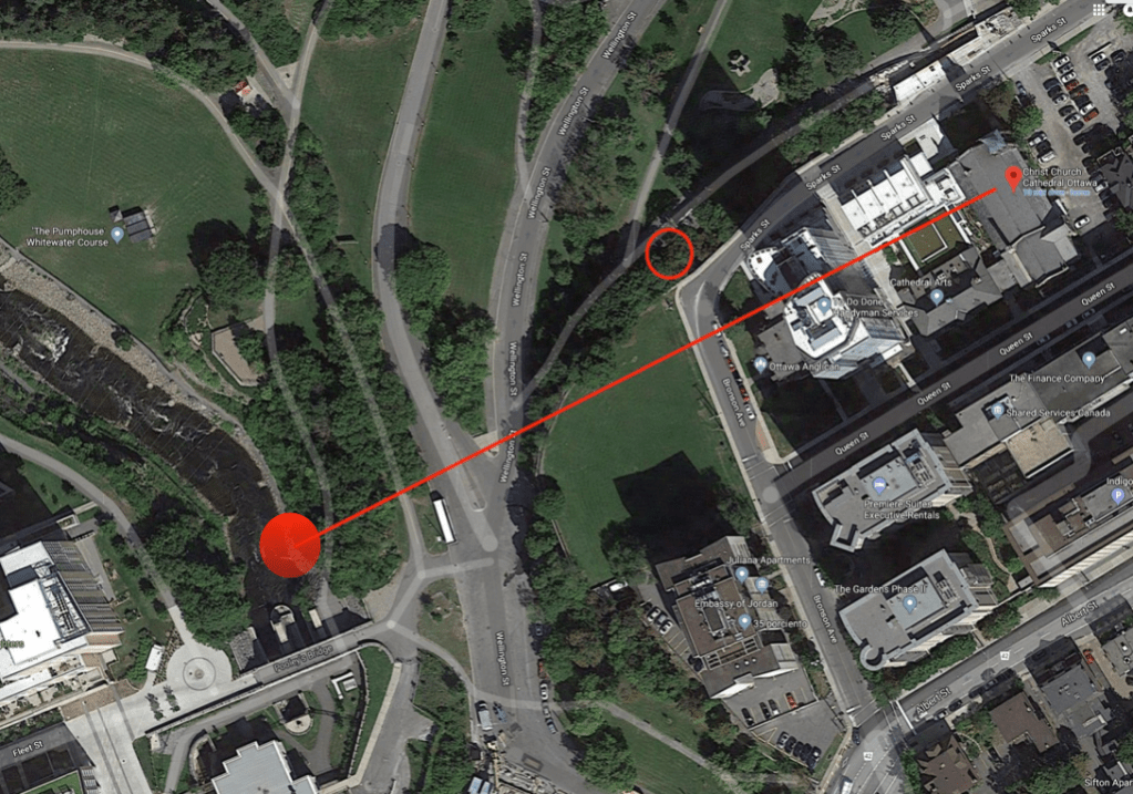 It seems that more than one source over history has described what seems to be a large cave under the western end of Sparks Street, yet no entrance to it has yet been found. The sound of running water from under the cliff substantiates the tales of a cavern waterfall or running water, and it is historical fact that Pure Spring Ginger Ale got its water from an underground spring at this exact spot. Perhaps someone in the city staff network knows more about what is around Pooley’s Bridge, or maybe members of Christ Church Cathedral can shed some light onto this dark mystery.