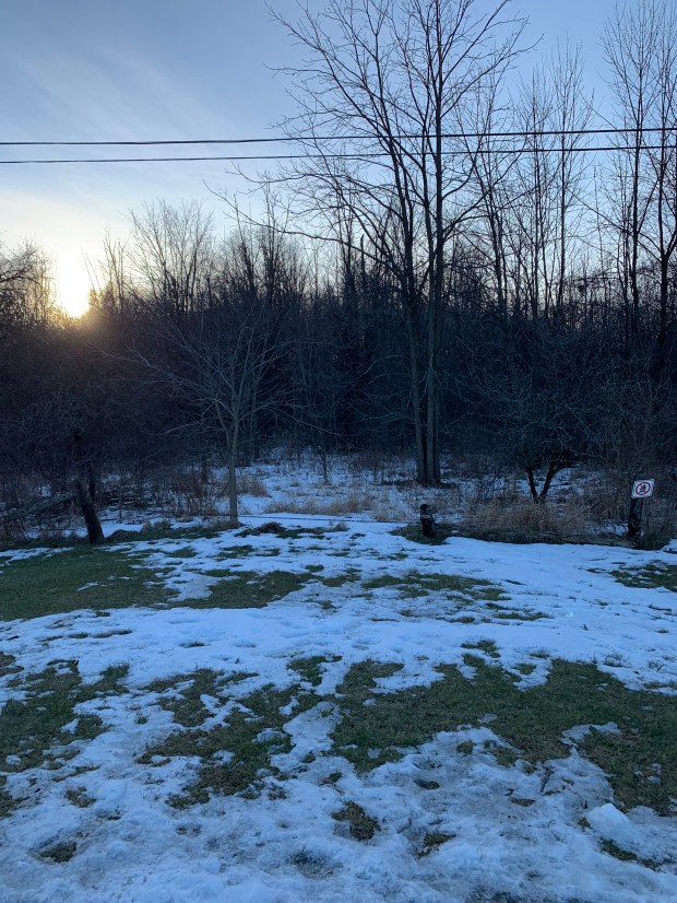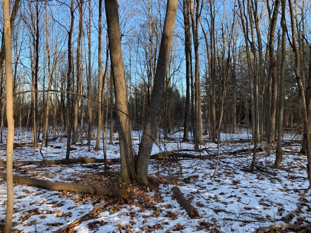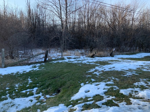 Just a depression in the ground with a pile of strewn stones, likely from the foundation. Onwards I went, up the old road, now overgrown with trees and covered in snow, another depression in the ground exactly where the church was indicated to be, halfway between Woodroffe and the Jock River.