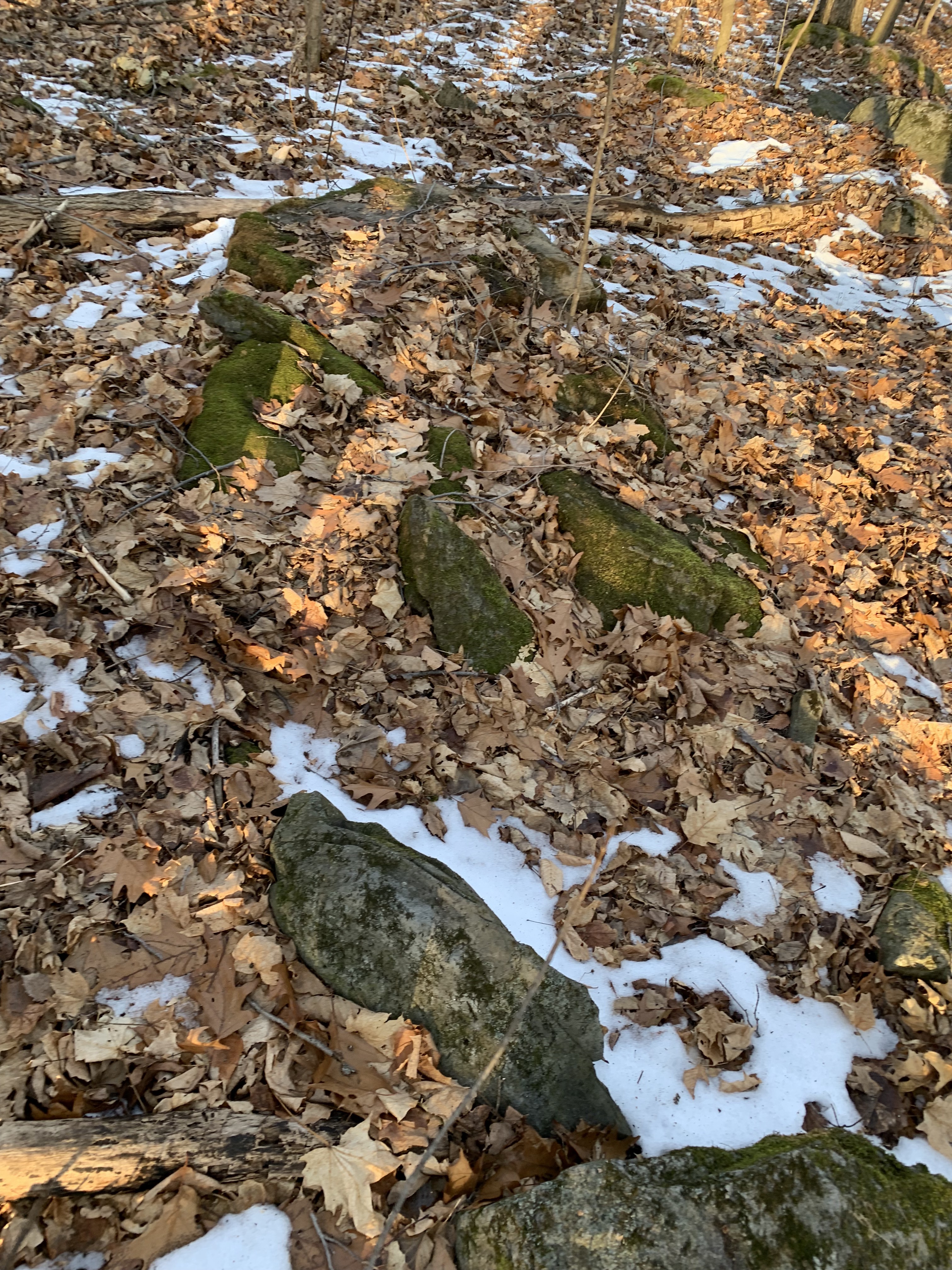 Pinning that location on my phone, I ventured out to the Heart’s Desire Park (not sure the origin of that name) and found the old roadway that led to the chapel. Trudging through the brush and following what was left of the old road, I came upon what looked to be the remains of Dawson’s house, as indicated on the map.