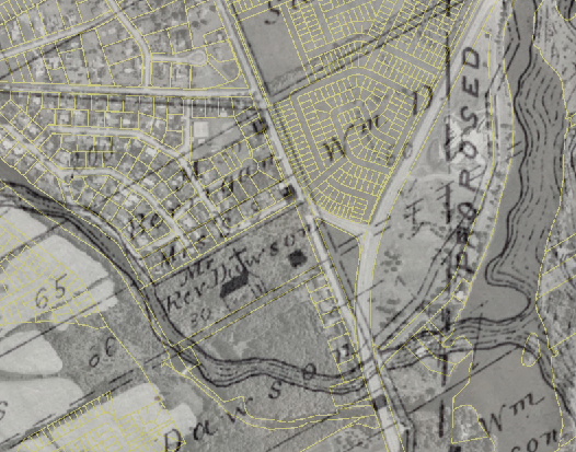 I could find nothing else about that particular area until I read up on the area which is marked lots 10/11 and indicated on a map from 1863. The lots of this particular area were owned by a Mr. George Sherwood, who later sold his land to a Mr. William Dawson in 1877. And this is where our story begins…