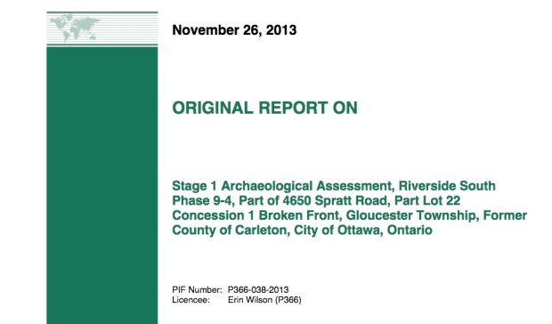Lo and behold, an archaeological site that was 8,000 years old, BhFw-19, called the “Munro Site” was nearby, a Middle Archaic Period site (approx 6,000BC!) was discovered in 2011. At that site, which is now under a suburban street in Riverside South, they found Archaic Period artifacts like a quartz bi-face. So what might lie in the Heart’s Desire Park?