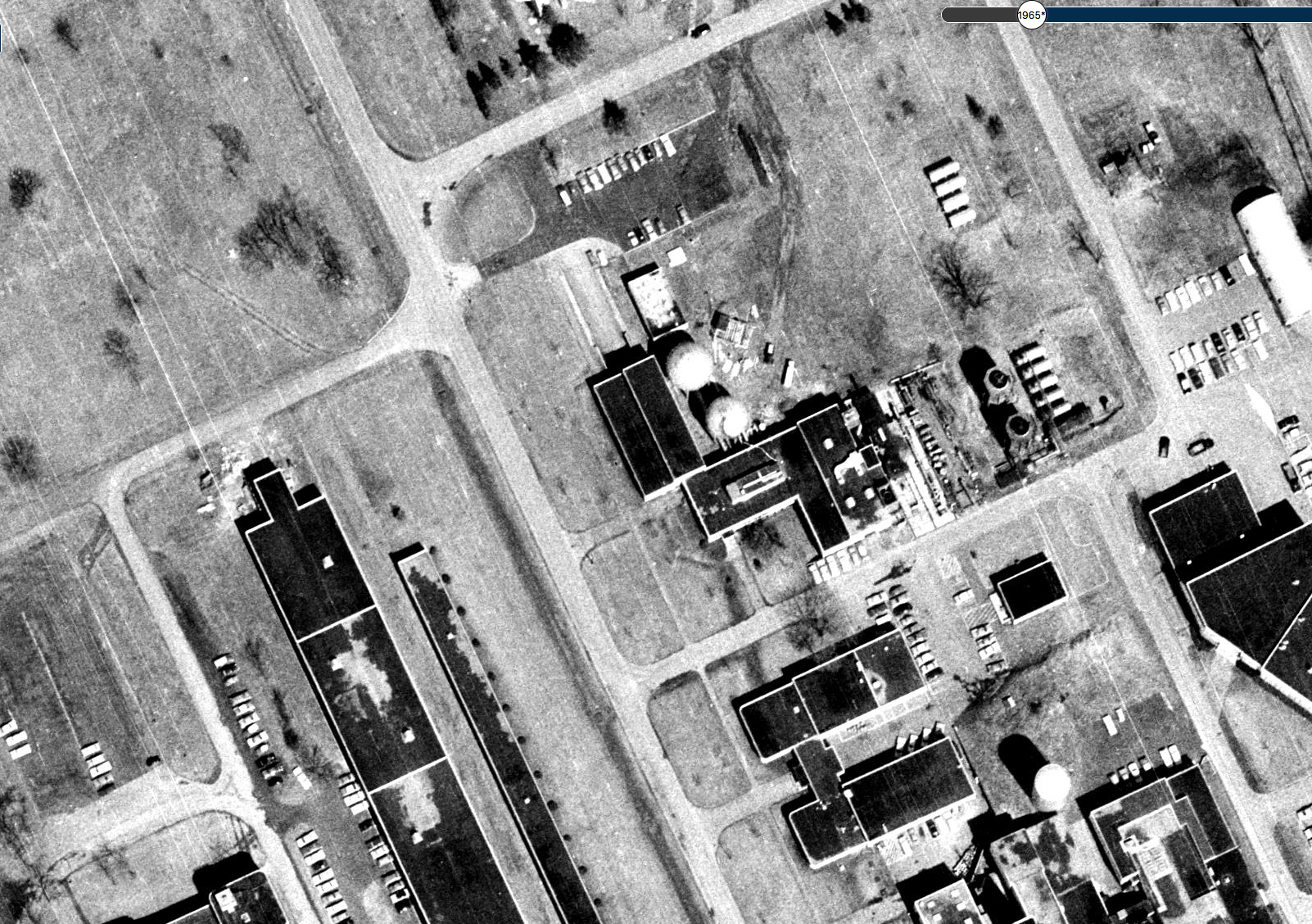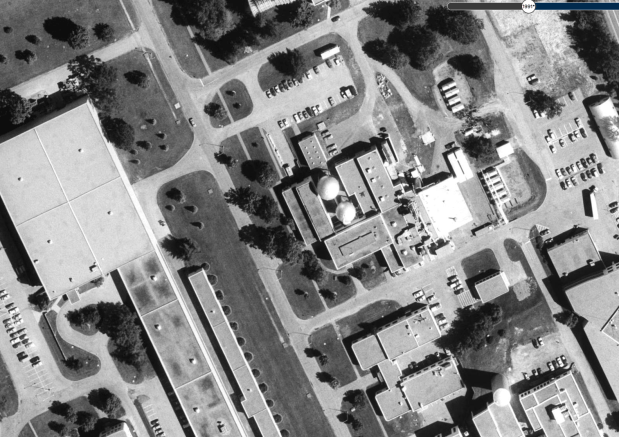 This 1965 sateliite image shows the test balls. (image GeoOttawa)