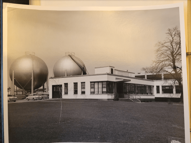 This is when the C-105 Avro Arrow took its shape as a delta wing aircraft design, but in order to study the new “supersonic flight” capabilities a special wind tunnel had to be built to create scale supersonic speeds for test models to be studied. This is when Ottawa’s NRC stepped up and built a whole new complex for supersonic aircraft testing using two immense spherical air chambers, called “vacuum spheres”.