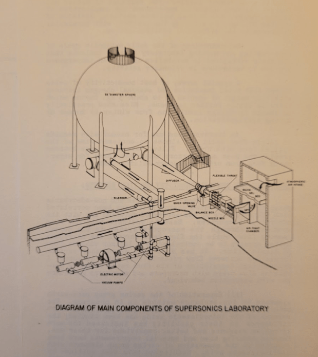 It seems Canada did not have a supersonic wind tunnel test facility at the time, and likely under the request of Avro, the plans were made to build one at the NRC. The design called for two 35ft diameter welded steel spherical air chambers, that contain air that is then pumped down to create a vacuum off air that was 1/10th the density of normal air. Then air is allowed to rush back into the spheres at speeds of Mach 2.0 as it goes through a wind tunnel that housed the scale aircraft models. The whole process lasted only 30 seconds when the spheres then filled with regular air.