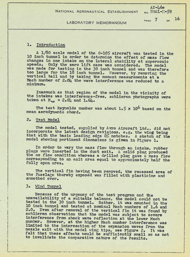 Newly disclosed government files reveal the scale model testing done at Ottawa’s Supersonic Wind Tunnel on the C-105 Avro Arrow. (image NRC Digital Repository/Library