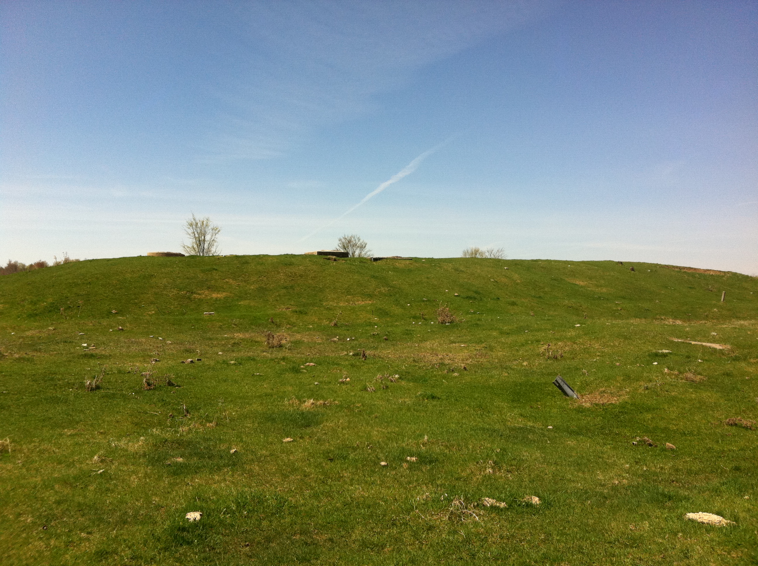 Climbing to the top of the mound, the former hatches and vent ports were clearly visible, all of which have been filled and sealed with concrete. A concrete side entrance, similar to the Carp bunker was also visible but it too has been filled in with earth and only its top portion remains exposed.