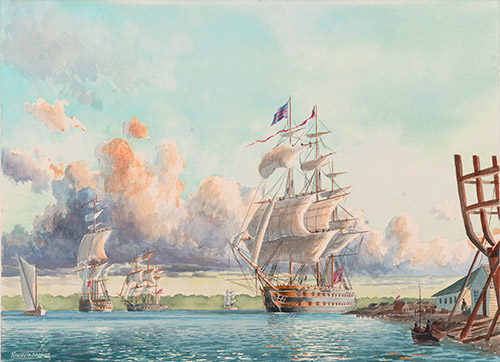 The colossal vessel was built in only ten months and was one of the largest ships of the Napoleonic era measuring 191 feet in length, five feet longer than Horatio Nelson’s HMS Victory. This goliath of the lake was also heavily armed with three decks containing 112 cannons – eight more than Nelson’s warship. Manned with a crew of 800 men, it was launched in September of 1814 ready to take on the American fleet under the command of British naval commodore Sir James Lucas Yeo, with Captain Frederick Hickey.