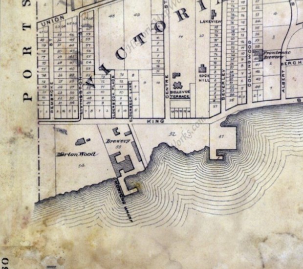 With the last known location of HMS St. Lawrence to be in front of Morton’s Brewery sometime in the mid-1800s, the final resting place of the ship was approximated using old maps and local diver reference. The original Morton Brewery buildings still exist on the Kingston waterfront so the underwater wreck most likely lies nearby.