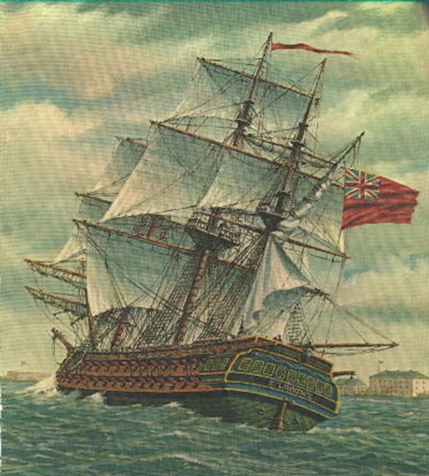 Afterwards, the mighty ship was deemed unnecessary and was de-commissioned, only one year after it was launched. Sitting idle at the docks of Kingston’s Navy Bay, it was finally stripped of its cannons and hardware and sold for a mere 25 pounds. The massive hulk of a ship was then reportedly used as a pier and floating warehouse for Kingston’s Morton Brewery. Eventually after years of neglect and decay, the once mighty warship was bashed to pieces in a storm and slipped beneath the waves.