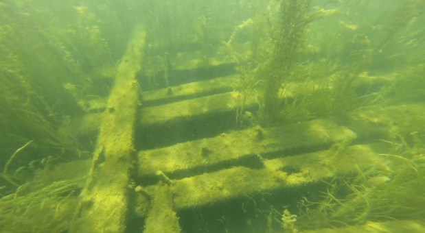 Seeing only weeds and rocks, I soon thought I was in the wrong area until I came across what looked like a mooring stone. Swimming around the area of the mooring stone through more weeds, some wood timbers came into view. There before me lay what was left of the greatest warship to ever sail the Great Lakes.