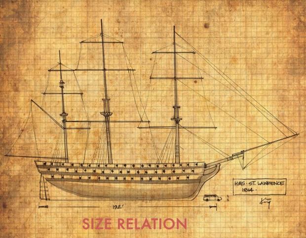 Patrolling the waters of Lake Ontario on the hunt to decimate any American ships in its path, the floating behemoth out-sized and outgunned anything the Americans had on the water. Out of fear the monster ship would blow their ships out of the water if confronted, the American fleet was kept their precious ships hidden safely in harbours with a clandestine attack planned to sink the mighty warship. Fearing the St. Lawrence would turn the tide of the war, the Americans sent in a secret team of operatives to sink the St. Lawrence in Kingston’s harbour with sea-mine of made out of a gunpowder filled keg. They failed in their mission to sink the new threat and a few months later, the War of 1812 ended.