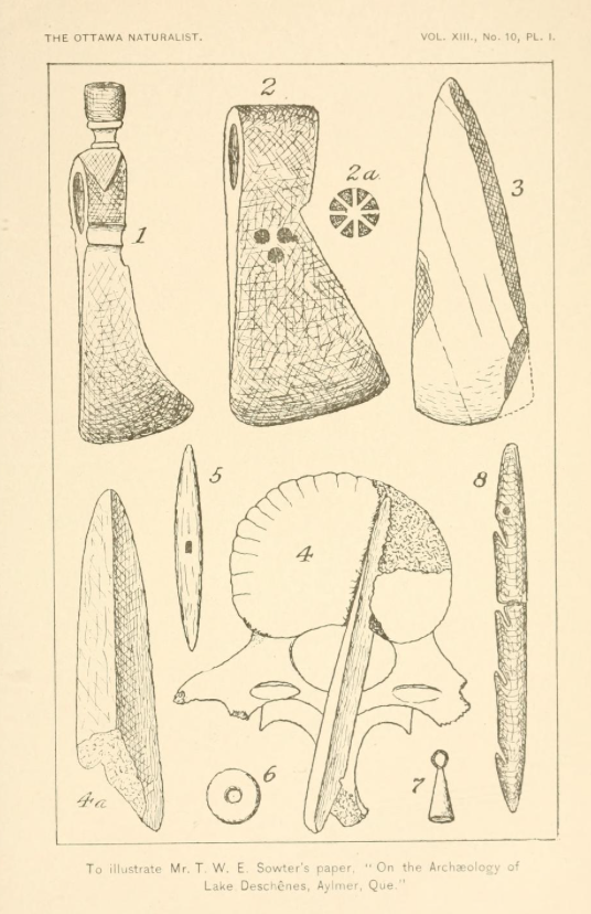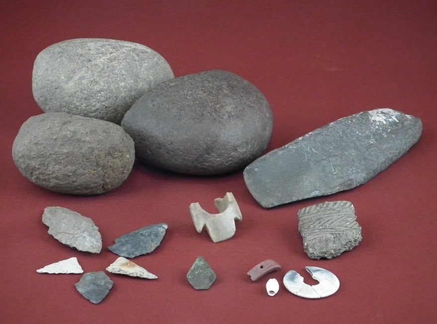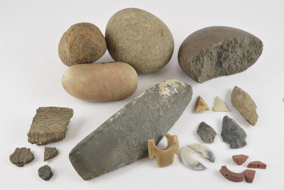 A variety of prehistoric Indigenous stone artifacts found on the island. (Registre du patrimoine culturel)