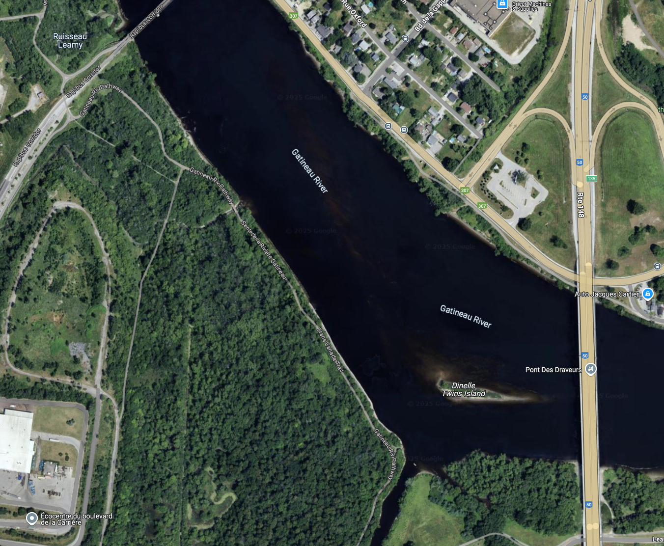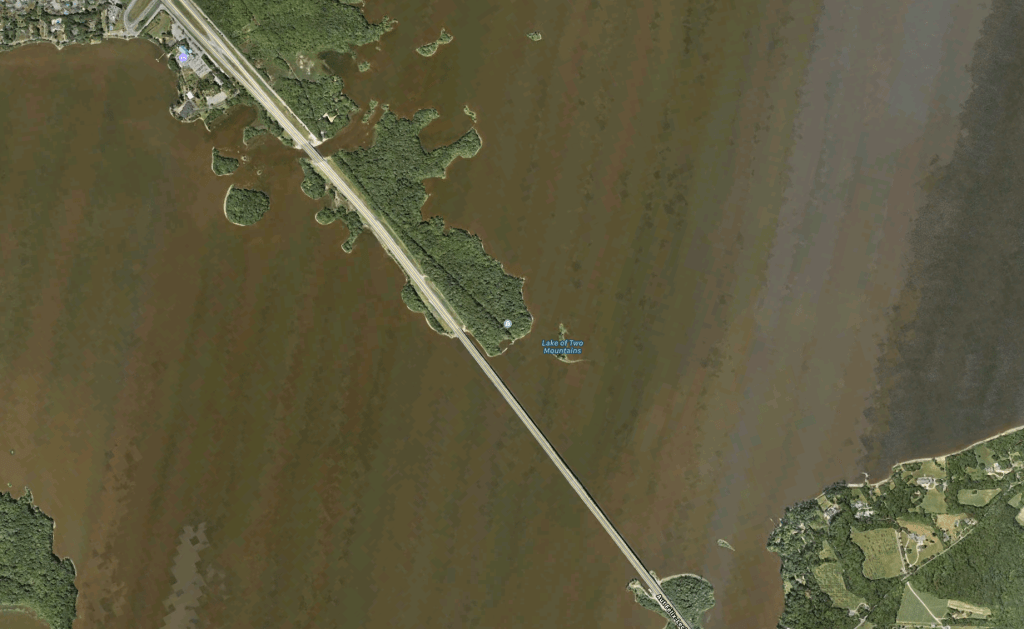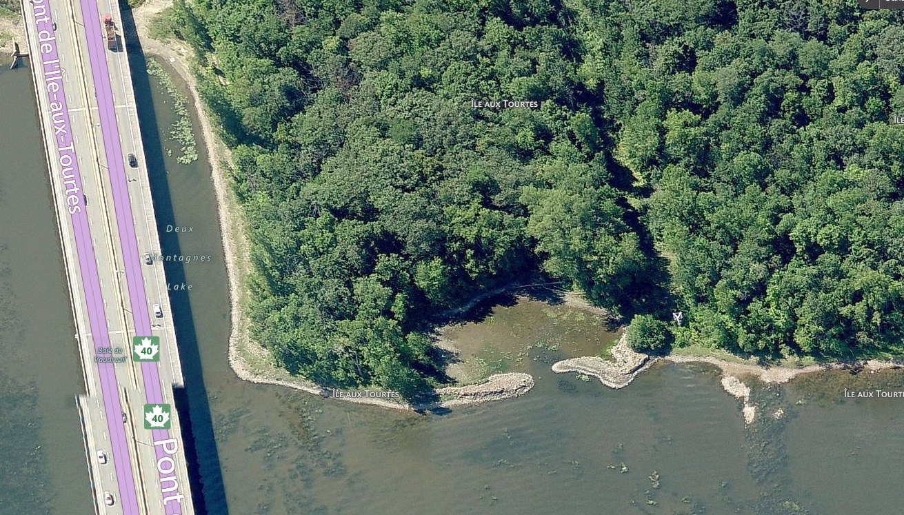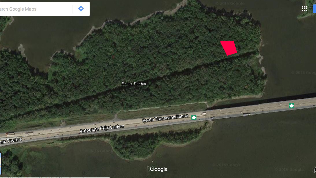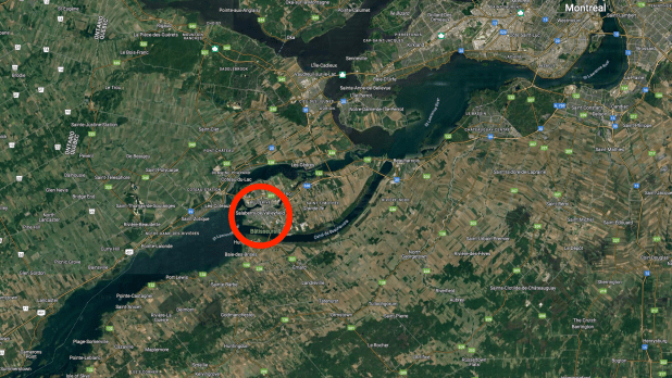 “Ile-Aux-Tourtes” at the convergence of the Ottawa River and St. Lawrence River near Montreal. (Google Maps)