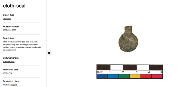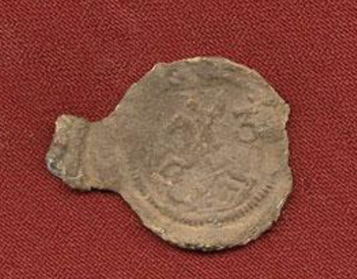 The one found on this island shows a horse and St. George spearing a dragon, the number 3 on it indicates that there was a levy of 3 pennies on whatever it was attached to. Curiously, this was made in England between 1660-1724 according to the British History Museum.