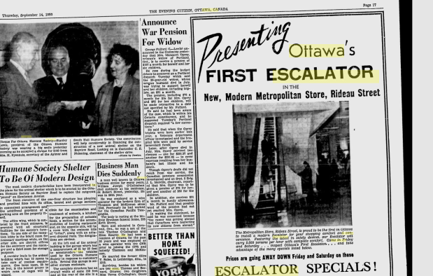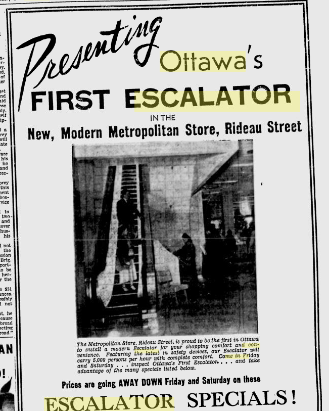 Ottawa Citizen advertising Ottawa’s First Escalator! (Google News Archives)