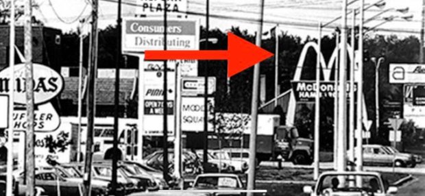 Westgate Mall Freiman’s as it appeared when it first opened compared to the same view as it looks today.