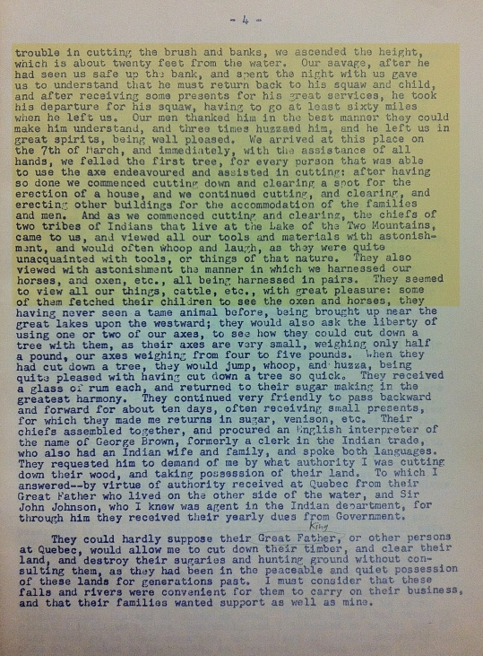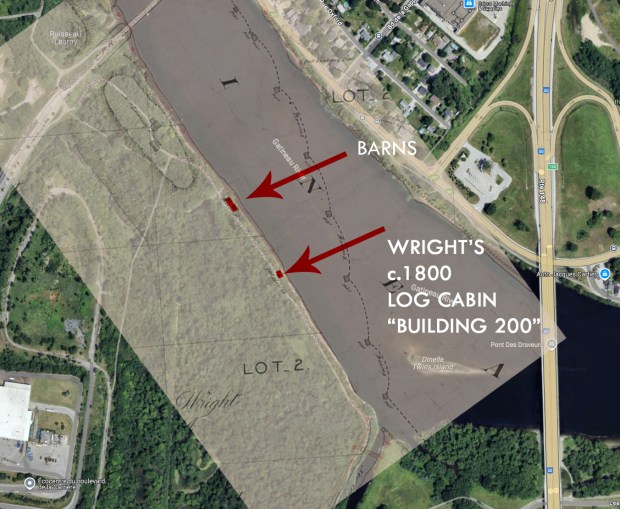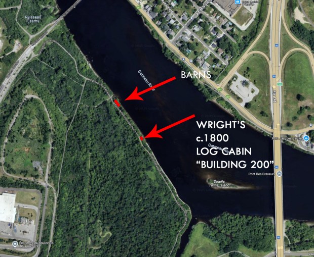A wooden guardhouse and an officers’ house were erected at the Île aux Tourtes mission. An archeological excavation on the island revealed the old foundations of the fort of which I have overlaid on to a current aerial image of the island to show where it was located.