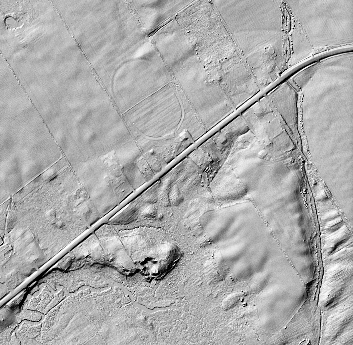 Guest’s map shows what he describes as “a half moon embankment, extending some ten rods across a neck of land, terminating to the north in a swamp, and to the southwest near the edge of a creek. It has three openings, which are from twenty to twenty-five feet wide.