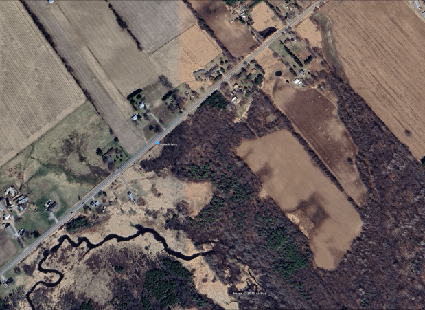 A search and sweep with a metal dectector might turn up pieces of the plane and other relics of this lost aircraft. A quick walk around the site definitely provided an assessment of the dense wooded area and creek where the aircraft wreckage was said to have crashed.