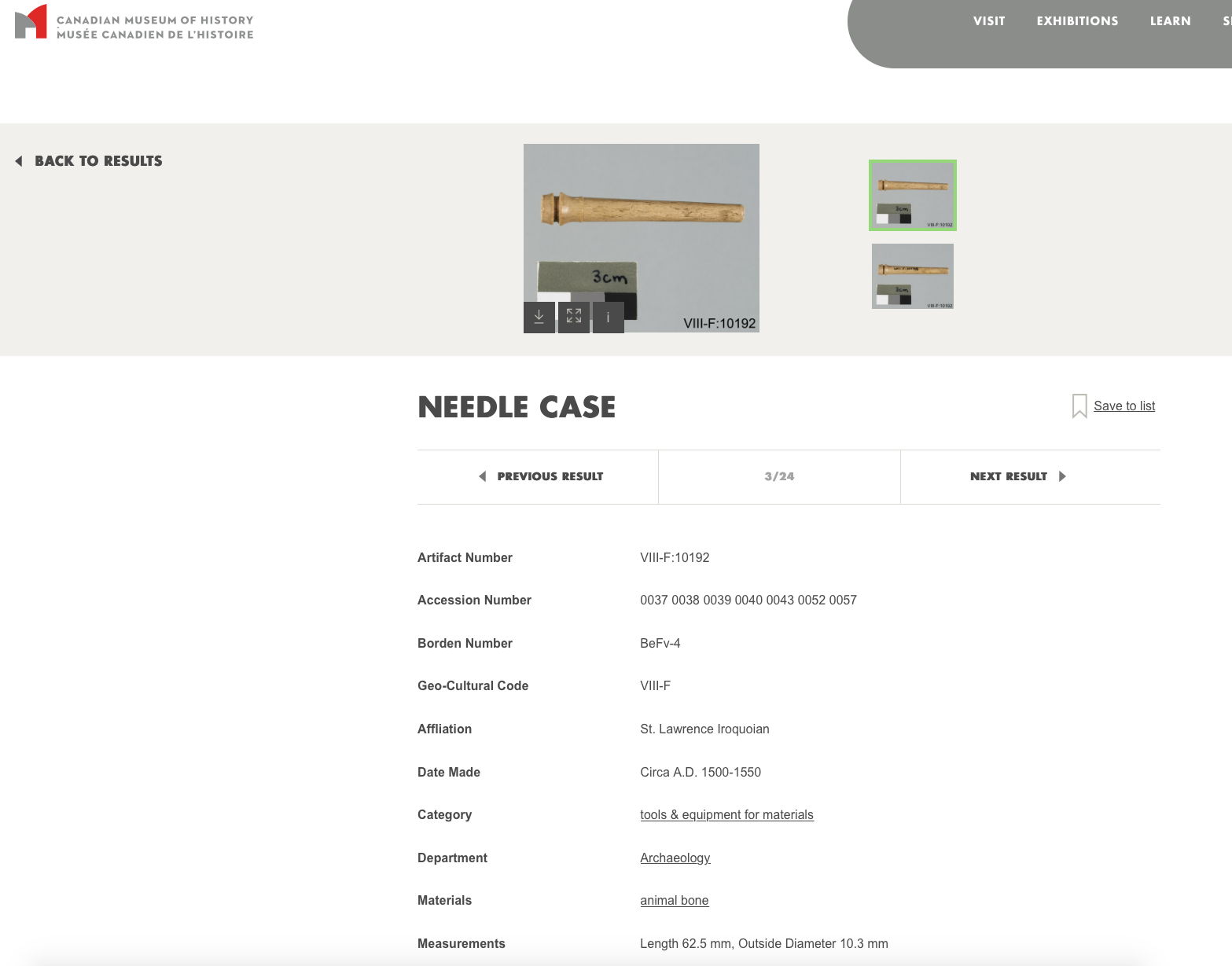 Artifacts recovered from the archeological dig. (Registre du patrimoine culturel)
