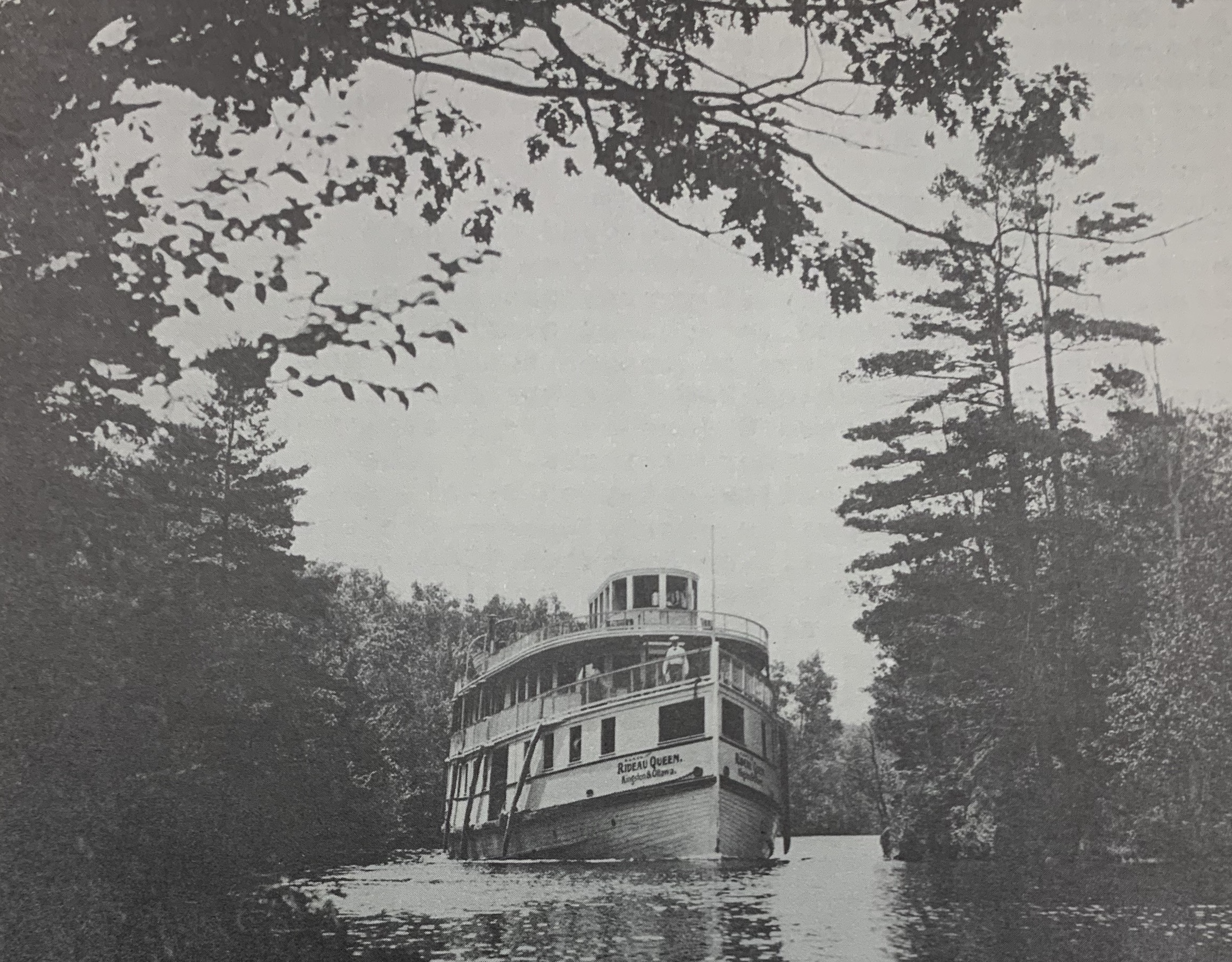 Also built by Robert Davis in Kingston, the Rideau Queen entered service in 1900 at a length of 108ft. and a breadth of 24ft. The most luxurious of all the Rideau steamships the Queen was ready for 300 passenger service in June of 1900, boasting accommodations rivalling any hotel of the time.