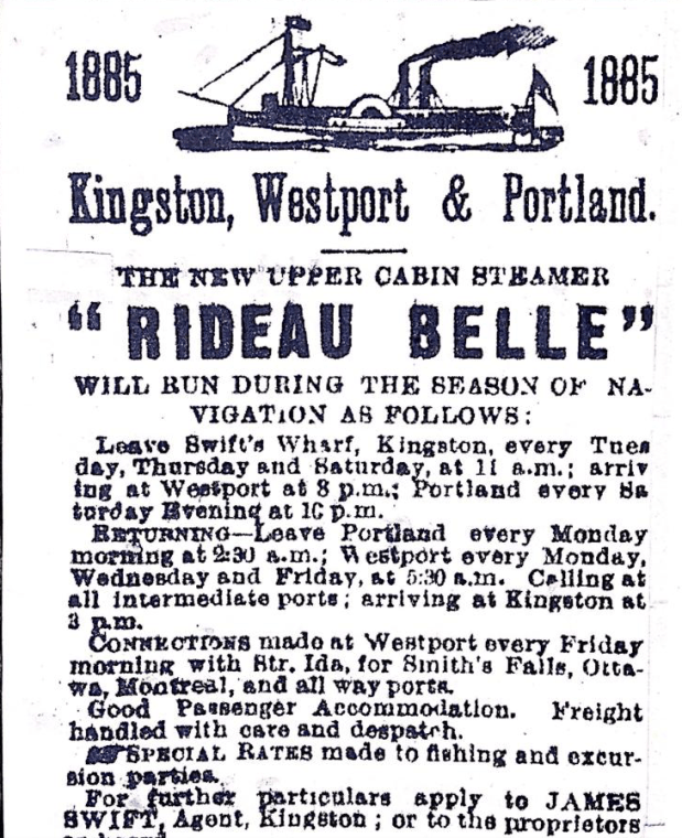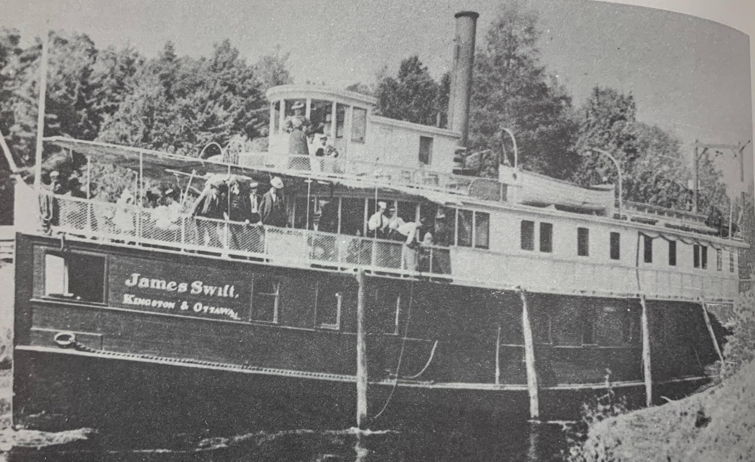 Built in Kingston by Matthew Davis with a length of 107 feet and a beam of 23ft., James Swift was one of the first ships to have electric lighting and a steam heating system. First licensed to carry 100 passengers, the ship also had conveniences such as hot and cold running water and made the journey from Kingston to Ottawa in about 27 hours.