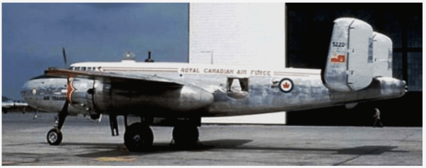 On March 1st, 1957 B-25J 5215 that had been modified to carry passengers instead bombs was completing a flight from Churchill, Manitoba to Ottawa with a fuel stop in North Bay, ON. Previously, the aircraft was part of the United States Air Force, built in 1944 during World War 2 with serial number 44-30485. Received from the USAF at Mobile, Alabama it went into storage with Training Command at RCAF Station Saskatoon, Saskatchewan in December of 1951. It then went to Advanced Flying School at Saskatoon in January 1952, then to North West Industries in Edmonton, Alberta for modifications in 1952/53. The modifications made included avionics upgrades but there is no mention of engine modifications that may have led to its demise.