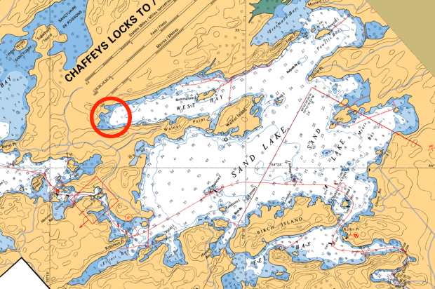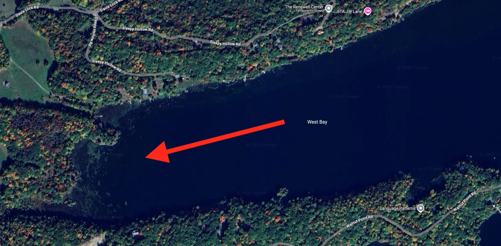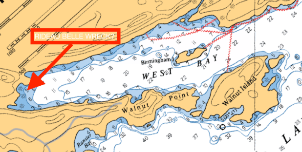So where is West Bay on Sand Lake and did Rideau Belle slip beneath the waves there or did remnants of her hull get dragged elsewhere?