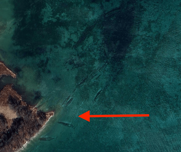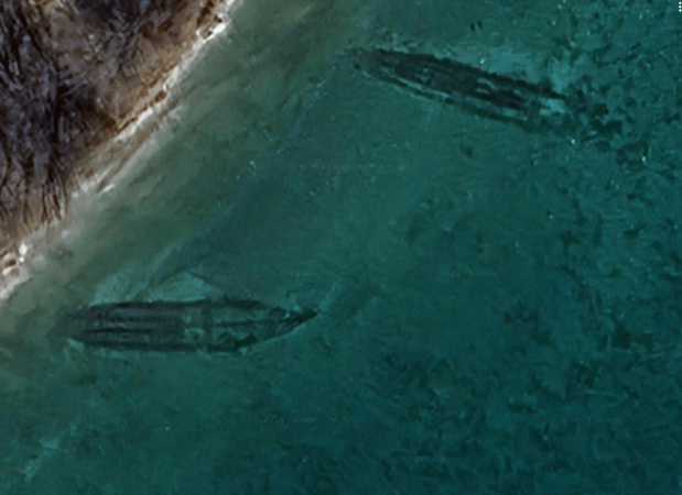 Many sunken ship’s hulls can be seen under the surface around Garden Island. (Google Maps)